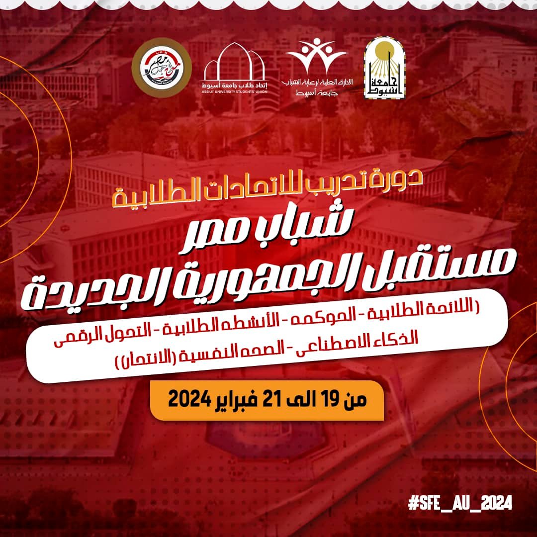 طلاب من اجل مصر بجامعة اسيوط .. الاعلان عن تدريب  "المشروع القومي لتوعية القيادات" تحت عنوان ( شباب مصر .. مستقبل الجمهورية الجديدة ) بالتعاون بين وزارة الشباب والرياضة وجامعة اسيوط متمثلة في اتحاد الجامعة وأسرة طلاب من أجل مصر