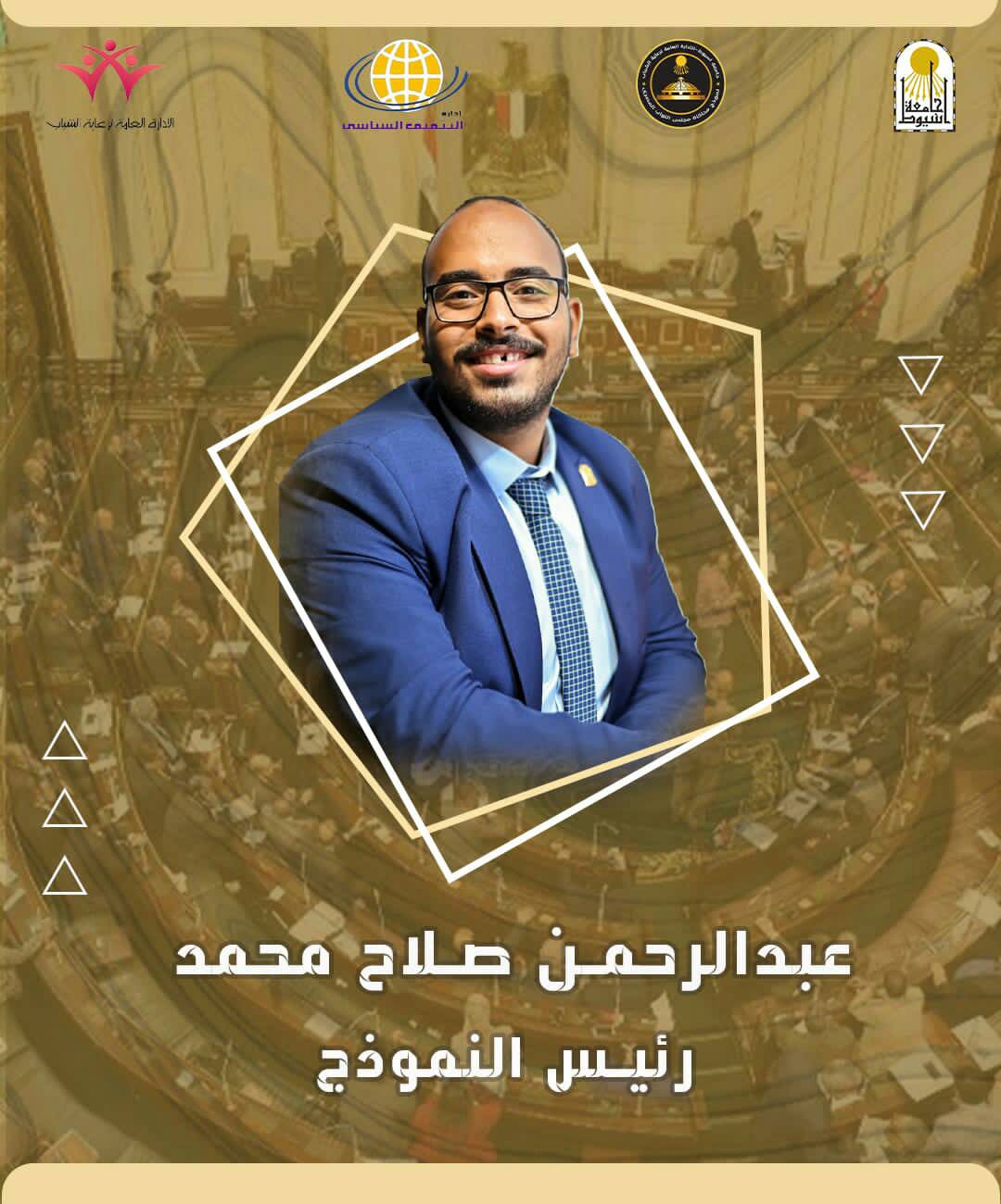 تعلن إدارة التثقيف السياسى عن رئيس نموذج مجلس النواب المصرى لهذا الموسم (الموسم الثاني عشر) الطالب (عبدالرحمن صلاح محمد)