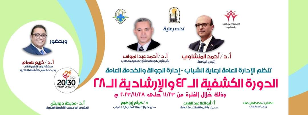 تنظم الإدارة العامة لرعاية الشباب - إدارة الجوالة والخدمة العامة  .. الدورة الكشفية ال ٤٢ والإرشادية ال ٢٨ وذلك خلال الفترة من ٢٣ نوفمبر ٢٠٢٣ حتى ٢٨ نوفمبر ٢٠٢٣م