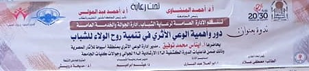 تنظم الادارة العامة لرعاية الشباب - إدارة الجوالة والخدمة العامة .. ندوة بعنوان دور واهمية الوعى الاثرى فى تنمية روح الولاء للشباب  يحاضرها الاستاذة إيناس محمد توفيق مدير ادارة الوعى الاثرى بمنطقة اسيوط للاثار المصرية وذلك ضمن فاعليات الدورة الكشفية ال 42 الارشادية ال28 لجوالى وجوالات كليات الجامعة