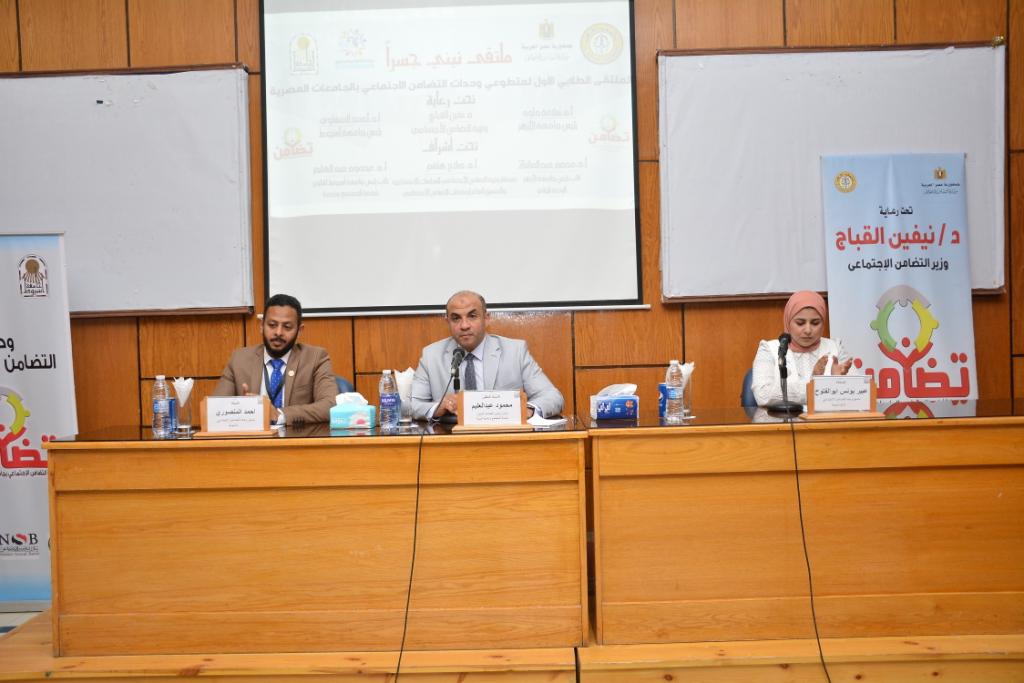 تحت رعاية الدكتورة نيفين القباج وزيرة التضامن الاجتماعي، والدكتور أحمد المنشاوي رئيس جامعة أسيوط، والدكتور سلامة داود رئيس جامعة الأزهر، وبإشراف الدكتور صلاح هاشم مستشار وزارة التضامن الاجتماعي للسياسات الاجتماعية، والمنسق العام لوحدات التضامن، وذلك في إطار بروتوكول التعاون المشترك بين وزارة التضامن الاجتماعي والجامعة.