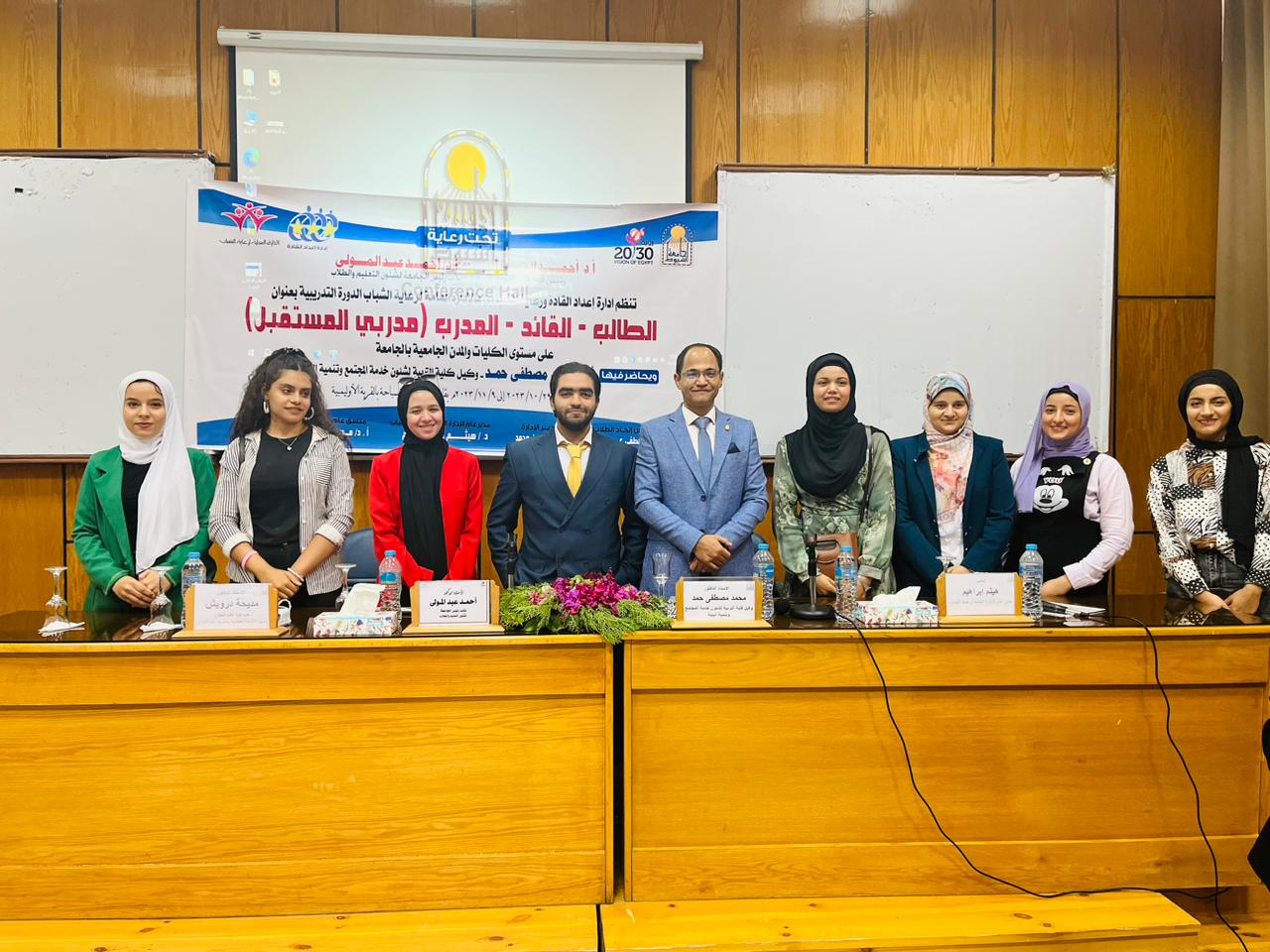 جاء ذلك بحضورالاستاذ الدكتور أحمد عبدالمولى نائب رئيس الجامعة لشئون التعليم والطلاب، والدكتورة مديحة درويش المشرف العام على الأنشطة الطلابية بالجامعة، والدكتور محمد مصطفى حمد وكيل كلية التربية لشئون خدمة المجتمع وتنمية البيئة، والمدرب لهذه الدورة التدريبية، والدكتور هيثم إبراهيم مدير عام الإدارة العامة لرعاية الشباب، والأستاذة مها حسن مدير إدارة إعداد القادة ورعاية المتميزين، والأستاذ إيهاب كامل مدير وحدة IT بالإدارة العامة لرعاية الشباب، وبمشاركة بعض الطلاب الخريجين وهم :