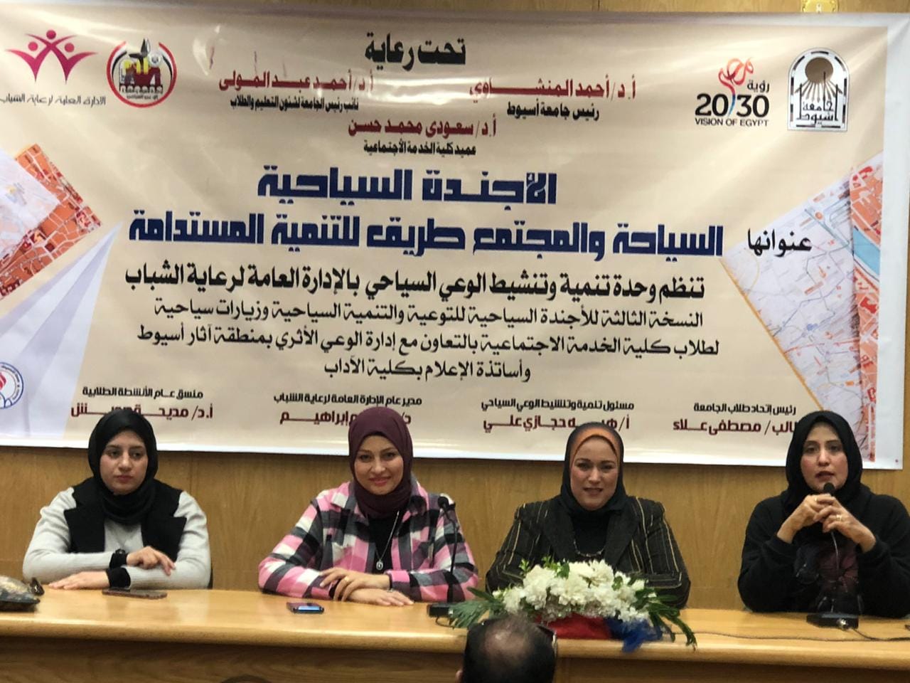 وحدة تنمية وتنشيط الوعى السياحى بالإدارة العامة لرعاية الشباب .. استمرار لنجاح وتميز الأجندة السياحية انطلقت النسخه الثالثه للأجندة برحاب كلية الخدمه الاجتماعية الندوة الثانية وذلك يوم الثلاثاء الموافق ٥ مارس بالتعاون مع ادارة الوعي الاثرى بمنطقة أسيوط وأساتذة الاعلام بكلية الاداب