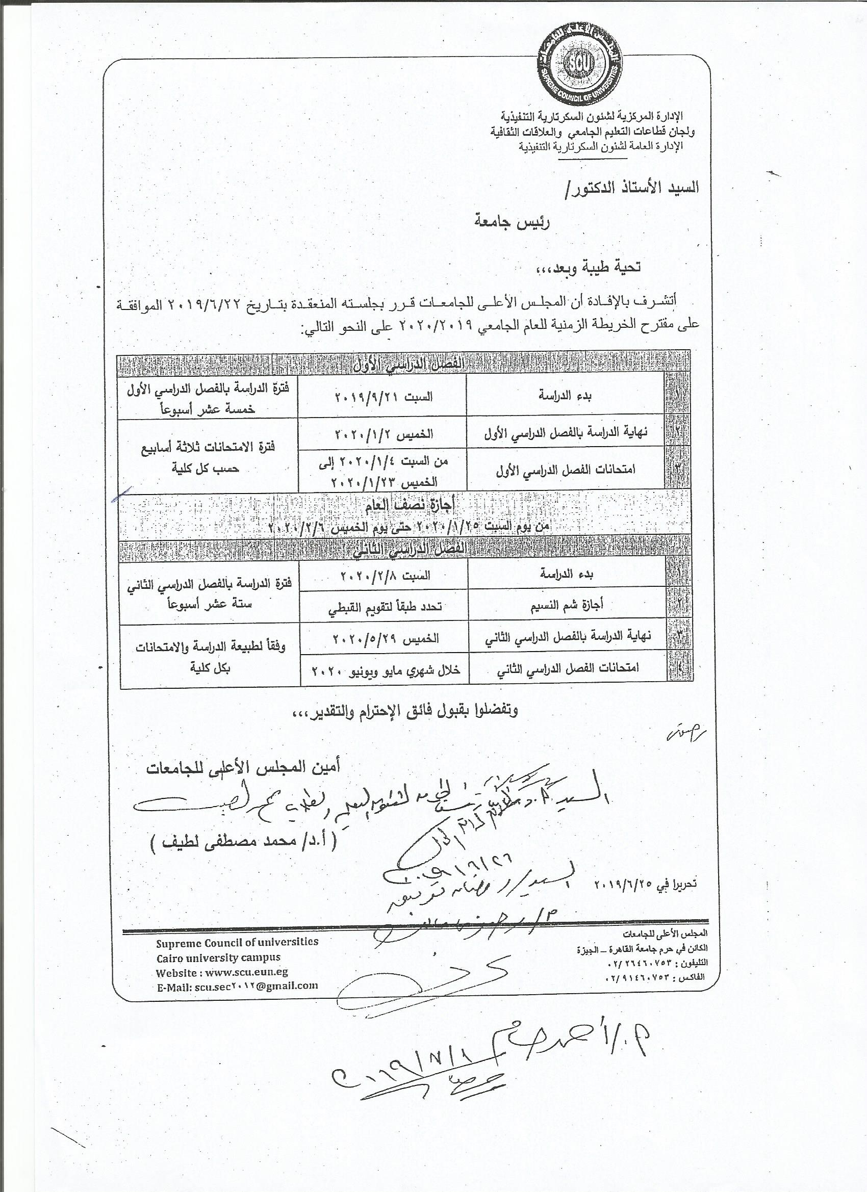 Das akademische Jahr beginnt normalerweise Ende September und dauert 30 Wochen. Die Halbzeitferien betragen zwei Wochen ab dem vom Universitätsrat festgelegten Datum.