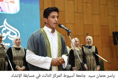 حصول جامعة أسيوط على بعض المراكز المتقدمة في مسابقة اللواء الوزير الدكتور /هشام أبو النصر محافظ أسيوط تحت شعار السيره النبويه والإنشاد الديني - إدارة الفنون بالإدارة العامة لرعاية الطلاب