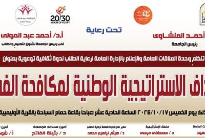 ندوة تثقفية بعنوان" بداية جديدة لبناء الإنسان "إدارة النشاط الاجتماعي بالإدارة العامة لرعاية الطلاب بالتعاون مع الإدارة العامة للعلاقات العامة والإعلام والهيئة المصرية العامة للتنشيط السياحى بأسيوط