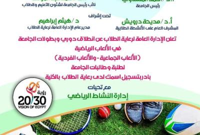 دعوة للمشاركة لجميع الطلاب والطالبات في دورى وبطولات الجامعة في الألعاب الرياضيه إدارة النشاط الرياضي بالإدارة العامة لرعاية الطلاب