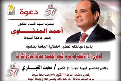 دعوة لحضور احتفالية الجامعة بمناسبة الذكري ( ٥١ ) لانتصارات حرب أكتوبر المجيدة