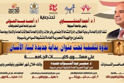 تعلن الادارة العامة لرعاية الطلاب - إدارة النشاط الاجتماعى والرحلات والادارة العامة للعلاقات العامة والاعلام بجامعة أسيوط بالتعاون مع الهيئة المصريه العامة للتنشيط السياحى بأسيوط ندوة تثقيفية تحت عنوان " بداية جديدة لبناء الانسان "على مستوى كليات الجامعة