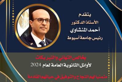 رئيس جامعة أسيوط يهنئ الطلبة الحاصلين على المراكز الأولى بالثانوية العامة