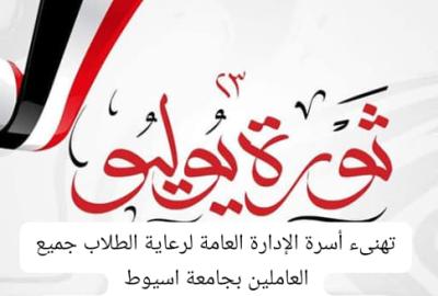 تهنىء أسرة الإدارة العامة لرعاية الطلاب ... جميع العاملين بجامعة اسيوط بمناسبة مرور ٧٢ عاما على ثورة ٢٣ يوليو