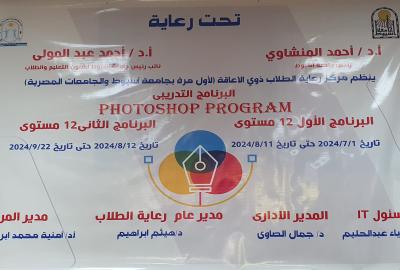 مركز رعاية الطلاب ذوي القدرات والاحتياجات الخاصه .. يعتزم مركز رعاية الطلاب ذوي القدرات والاحتياجات الخاصه بتظيم البرنامج التدريبي PHOTOSHOP PROGRAM لطلاب المركز .