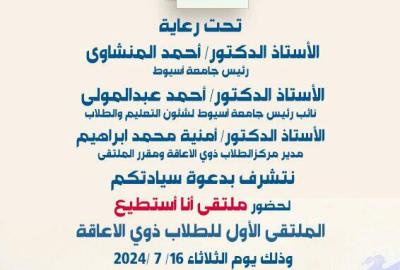 الثلاثاء القادم ... ملتقى جامعة أسيوط الأول لطلاب ذوى الإعاقة "أنا أستطيع"