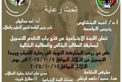 كلية التجارة ... تعلن اللجنة الاجتماعية عن فتح باب التقدم للتسجيل لمسابقة الطالب المثالى والطالبة المثالية