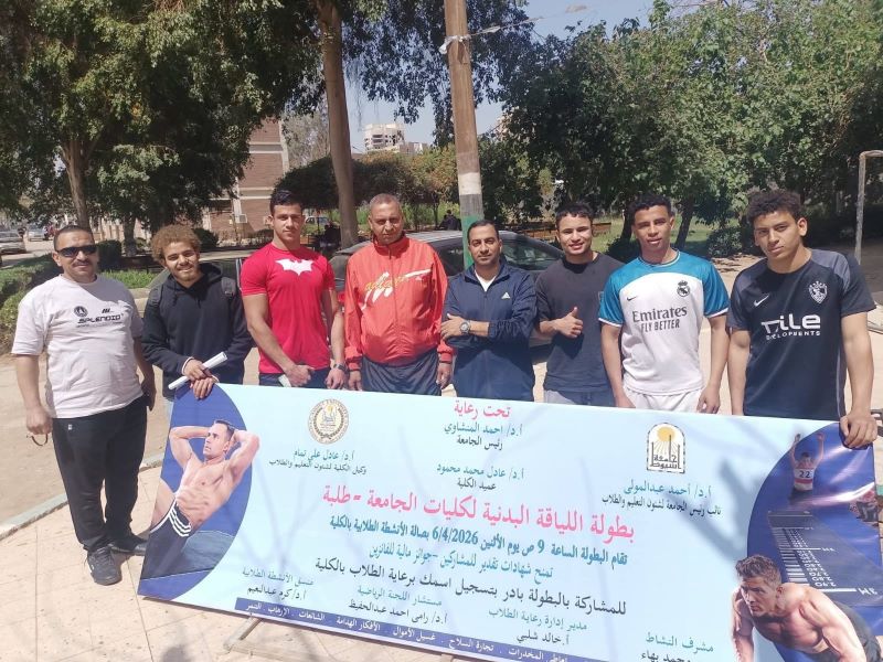 تم المشاركة في بطولة اللياقة البدنية التي أقيمت  بكلية الزراعة جامعة أسيوط يوم ٦ ابريل٢٠٢٦وفاز الطالب محمد اشرف هلال بالمركز الأول على مستوى كليات الجامعة