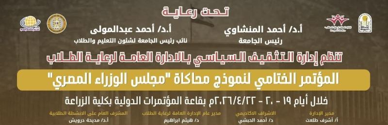 مجلس الوزراء المصري بجامعه اسيوط بقاعه المؤتمرات الدوليه بكليه الزراعه وذلك يوم الاربعاء الموافق ٢٢ أبريل الساعة العاشرة صباحا