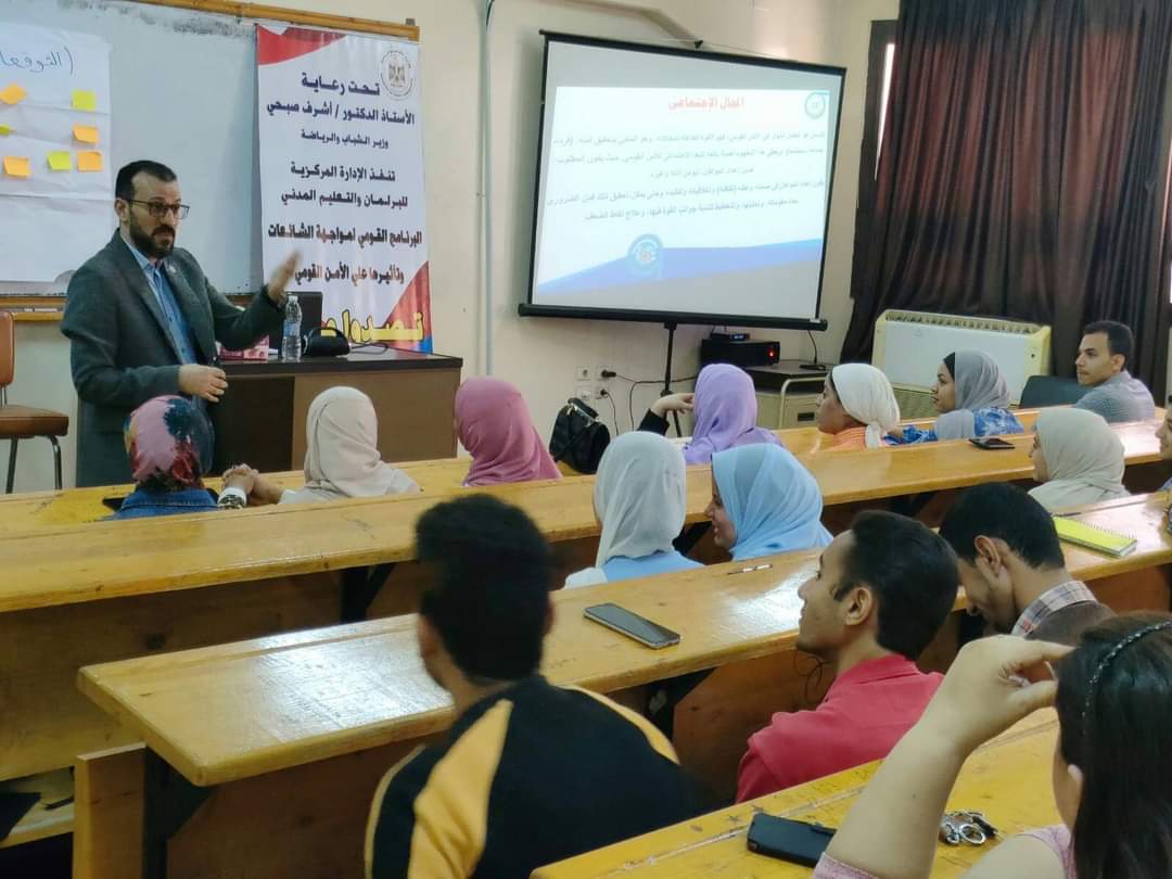 وتأثيرها على الأمن القومي تحت شعار (تصدو معنا) بكلية التجارة- جامعة أسيوط.