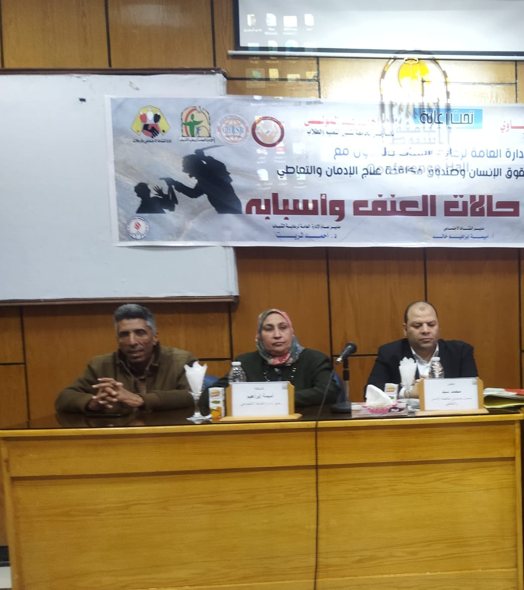 نظمت ادارة النشاط الثقافي وأدارة النشاط الاجتماعي والرحلات بالادارة العامة لرعاية الشباب المركزية بالتعاون مع مركز دراسات وبحوث حقوق الانسان وصندوق مكافحة علاج الادمان والتعاطى ندوة توعوية للعاملين بالجامعة بعنوان " الحد من حالات العنف واسبابه"