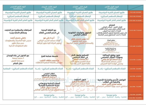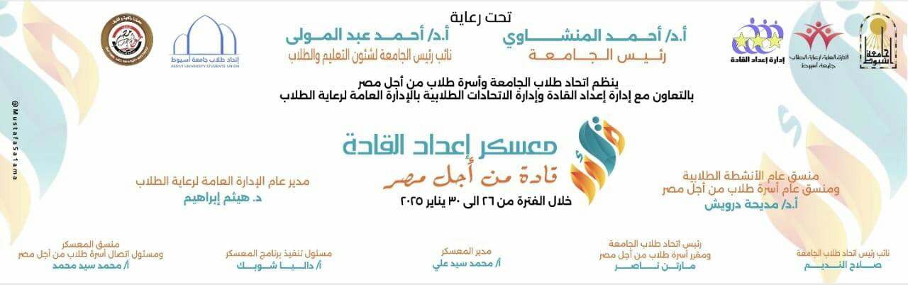 معسكر إعداد القادة تحت شعار "قادة من أجل مصر" إدارة إعداد القادة وادارة الاتحادات الطلابية Read more about معسكر إعداد القادة تحت شعار "قادة من أجل مصر" إدارة إعداد القادة وادارة الاتحادات الطلابية رحلات الصيف من مكتب الخدمات السياحية 1 26 يناير 2025