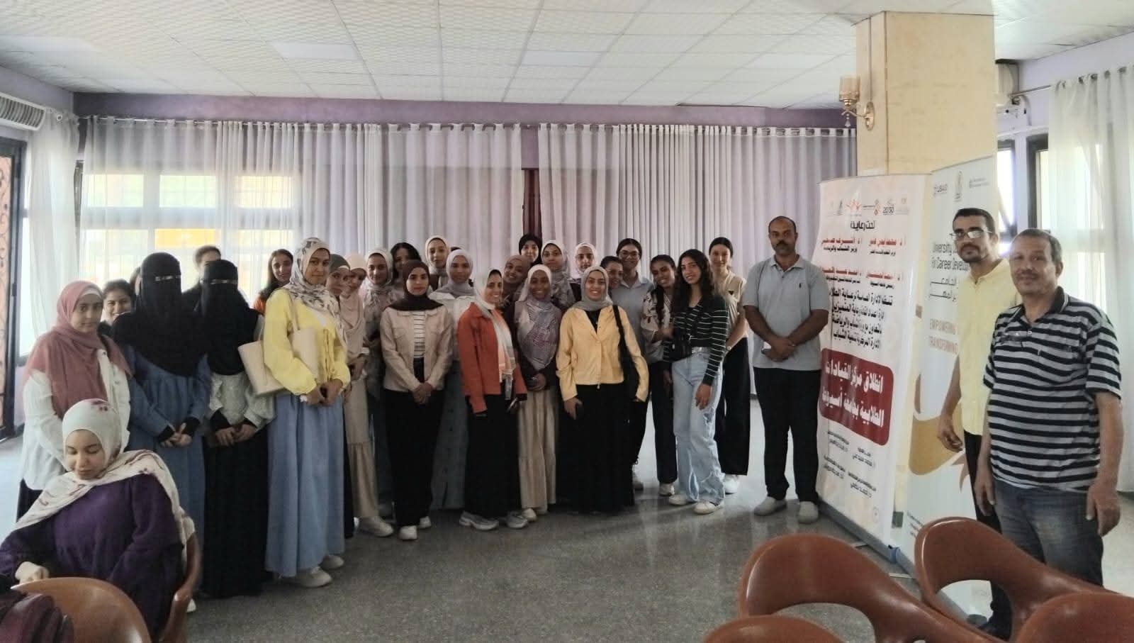 صور إدارة إعداد القادة ورعاية المتميزين بالإدارة العامة لرعاية الطلاب تنظم الإدارة انطلاق مركز القيادات الطلابية وبالتعاون مع وزارة الشباب والرياضة الإدارة العامة للبرامج والأنشطة الجامعية والمركز الجامعى للتأهيل المهنى برنامج تدريبى تحت عنوان "جاهز"