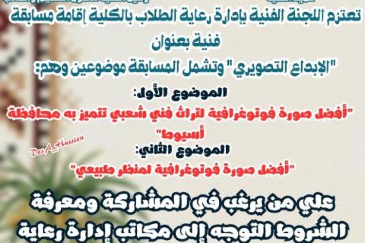 كلية التربية-تعلن اللجنة الفنية لرعاية الطلاب عن إقامة مسابقة فنية بعنوان " الإبداع التصويري "