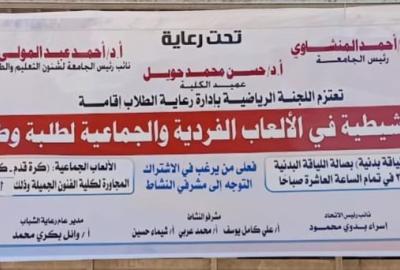 دعوة لمشاركة الطلاب والطالبات بكليات الجامعة المختلفة في دوري وبطولات الجامعة في الألعاب الجماعية والألعاب الفردية - أدارة النشاط الرياضى بالإدارة العامة لرعاية الطلاب