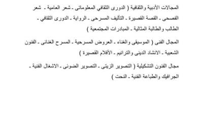 الإدارة العامة لرعاية الطلاب تدعو طلاب جامعة أسيوط المشاركه فى مهرجان إبداع الموسم الرابع عشر فى المجالات التالية بالتعاون مع وزارة الشباب والرياضة