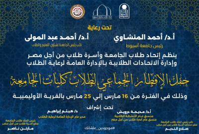 اتحاد طلاب جامعة اسيوط .. حفل الإفطار الجماعي خلال الفترة من 16 لـ 25 مارس بـ القرية الأوليمبية لطلاب كليات الجامعة