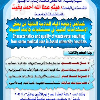 تم مناقشة رسالة  الماجستير  المقدمة من الباحث/ هيثم عطا الله أحمد بخيت بالمستشفيات الجامعية