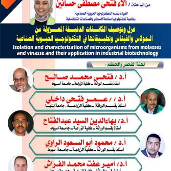 تم منـــاقشـة رسـالة الماجستير في علوم وتكنولوجيا صناعة السكر والصناعات التكاملية الشعبة الزراعية…