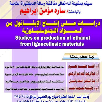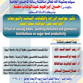 تشجيعا من الكلية والمساعدة في الربط بين الكلية وشركات السكر في البحث والتطوير تم مناقشة رسالة الدكتوراة الخاصة بالباحثة / ساره مؤمن إبراهيم واحدة من أنشط العاملين بالكلية وقد حضر المناقشة أ.د/ صلاح…
