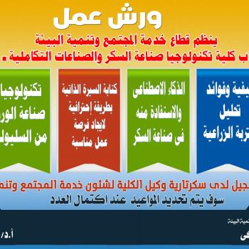 ينظم قطاع خدمة المجتمع وتنمية البيئة ورش عمل لطلاب كلية تكنولوجيا صناعة السكر والصناعات التكاملية ـ جامعة أسيوط