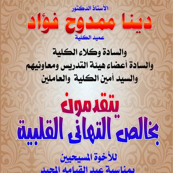 تهنئ أسرة الكلية الاخوة المسيحيين بمناسبة عيد القيامه المجيد