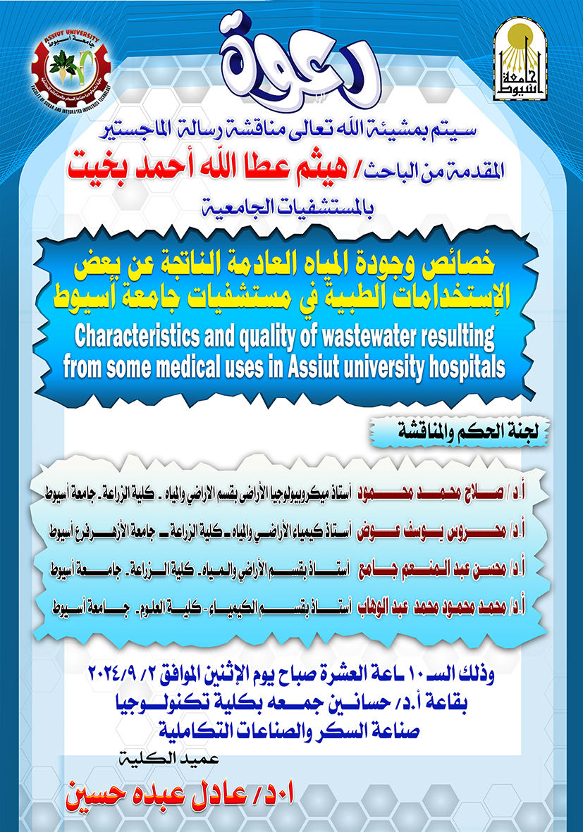 خصائص وجودة المياه العادمة الناتجة عن بعض الإستخدامات الطبية في مستشفيات جامعة أسيوط