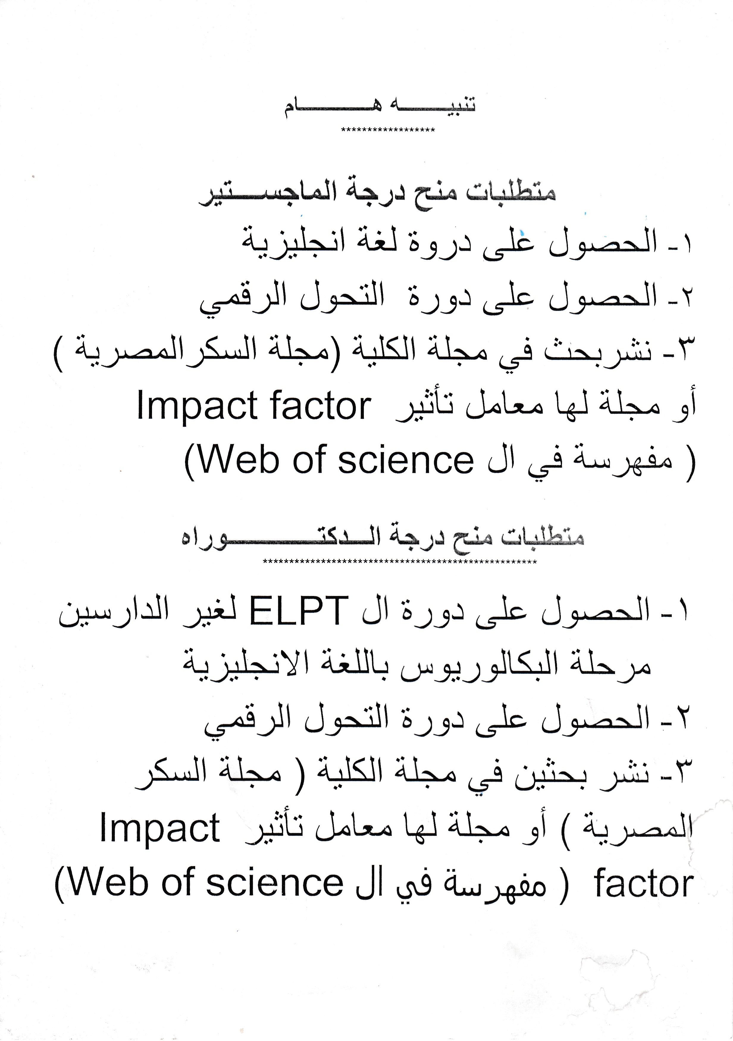 متطلبات منح رسالة الماجستير والدكتوراة