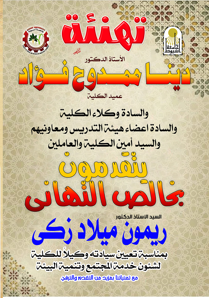 تهنئة 2 أبريل 2023 تهنئة الاستاذ الدكتور/ ريمون ميلاد زكى لتعيين سيادته وكيلا للكلية لشئون خدمة المجتمع وتنمية البيئة