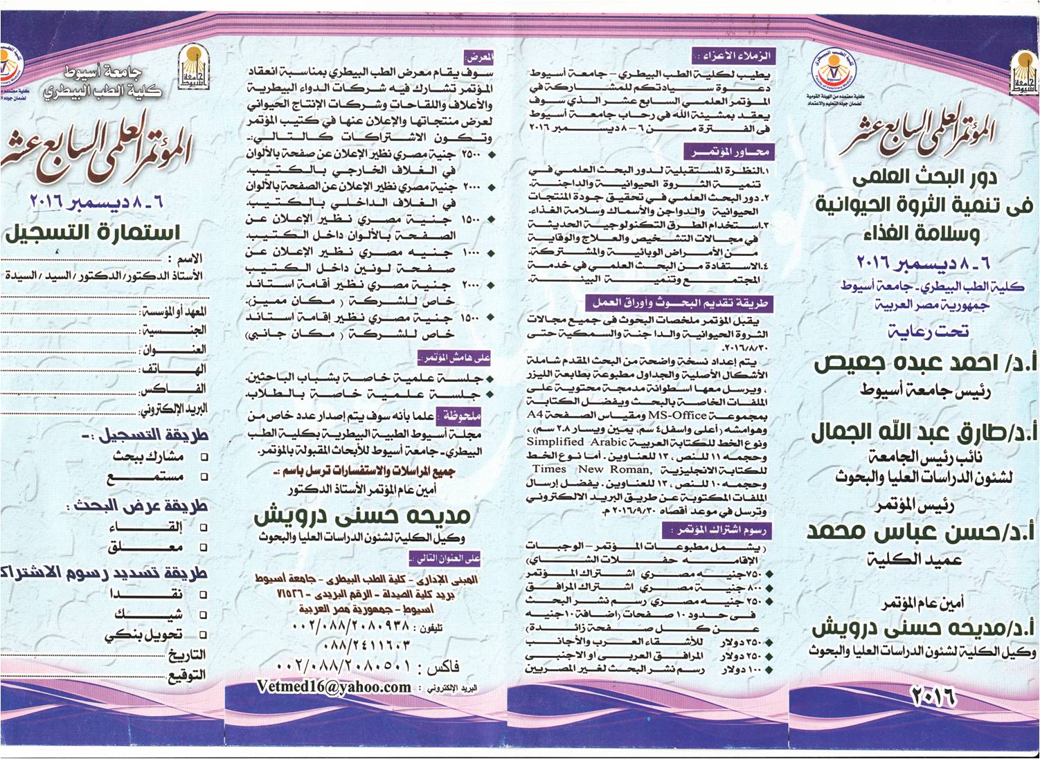 The 17 th Scientific Congress 1 November 2016 Assiut University Faculty of Veterinary Medicine The 17 th Scientific Congress 6 -8 Dec 2016 The Role of Scientific Research in The Livestock Development and Food Safety http://www.aun.edu.eg/conferences/17vm/