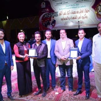 تكريم اتحاد طلاب الجامعة للسيدة الاستاذ الدكتور / مديحه حسني احمد درويش عميد كلية الطب ومستشار لجنة الأسر والمبادرات في حفل ختام الانشطه لعام 2018 / 2019  اتحاد كلية الطب البيطري وعلي…
