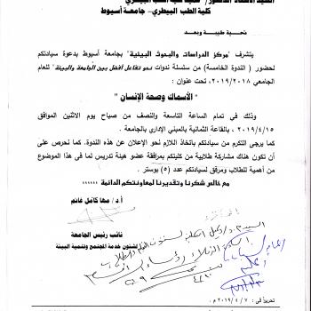 تتقدم السيدة أ.د. مديحة درويش .عميد الكلية .بخالص التهانى القلبية إلى أسرة جامعة أسيوط . السيد أ.د. رئيس الجامعة والسادة النواب والسادة أعضاء مجلس الجامعة وإلى أسرة كلية الطب البيطرى . السادة…