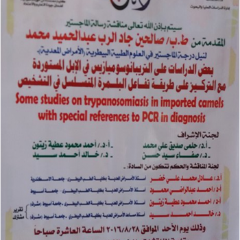 مناقشة رسالة الماجستير الخاصة بالطبيب بيطرى / صالحين جاد الرب عبدالحميد