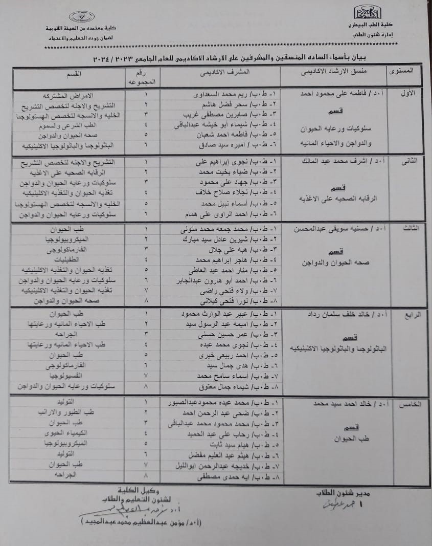 توزيع الارشاد الاكاديمي للطلاب للعام الدراسي ٢٠٢٣/٢٠٢٤