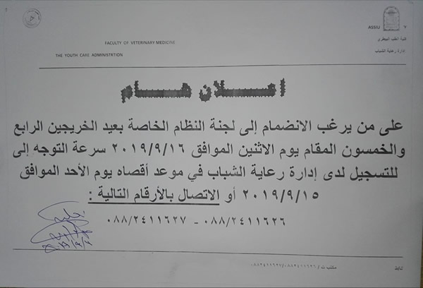 هل لديك سؤال ؟(088) 2352334 - 2411600.vet_med_dean@aun.edu.eg