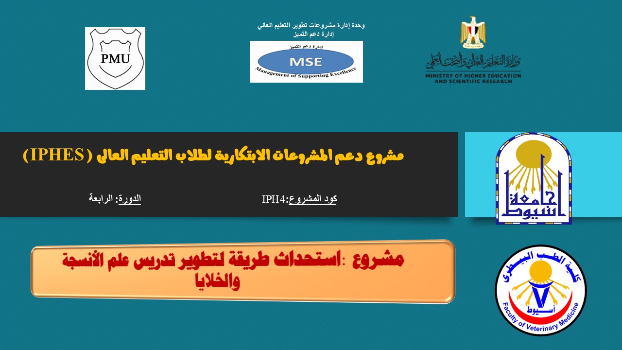 وفي هذا المشروع يقوم الطالب بتنفيذ مثل تلك النماذج باستخدام خامات محلية (قليلة مكلفة) تعتمد علي استخدام المهارات التعبيرية والفنية للطلاب وتنفيذ هذه النماذج واستخدامها في تبسيط شرح مادة علم الانسجة العام والخاص وهذه طريقة مستجدة ولم تستخدم من قبل في اي جامعة من الجامعات المصرية ( الحكومية " الاهلية " الخاصة )