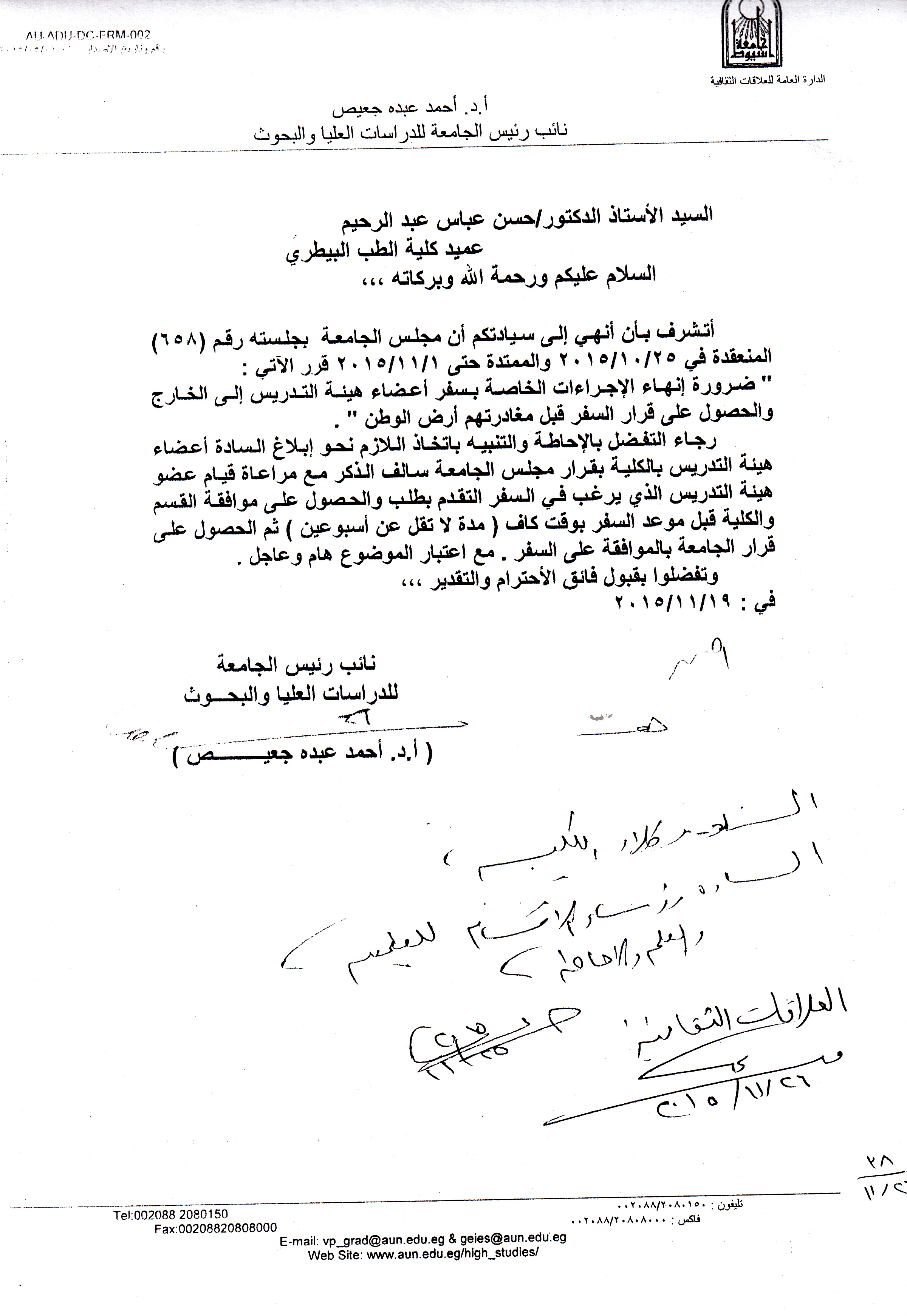 ضرورة انهاء الإجراءات الخاصة بسفر أعضاء هيئة التدريس قبل مغادرتهم أرض الوطن 30 نوفمبر 2015 ضرةرة انهاء الإجراءات الخاصة بسفر أعضاء هيئة التدريس قبل مغادرتهم أرض الوطن