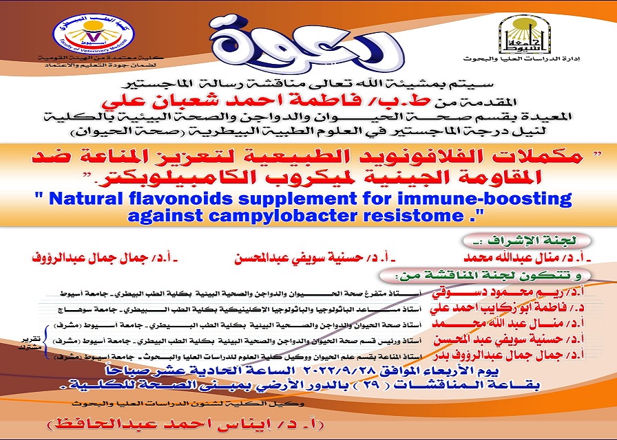 دعوة مناقشة رسالة ماجستير 21 سبتمبر 2022 تتقدم أسرة قسم الرياضيات بالكلية بالتهنئة للدكتورة / شيماء ابراهيم مصطفي لمنح سيادتها درجة دكتوراه الفلسفة في العلوم رياضيات / تحليل دالي بقسم الرياضيات بالكلية متمنيين لسيادتها دوام التقدم والترقي