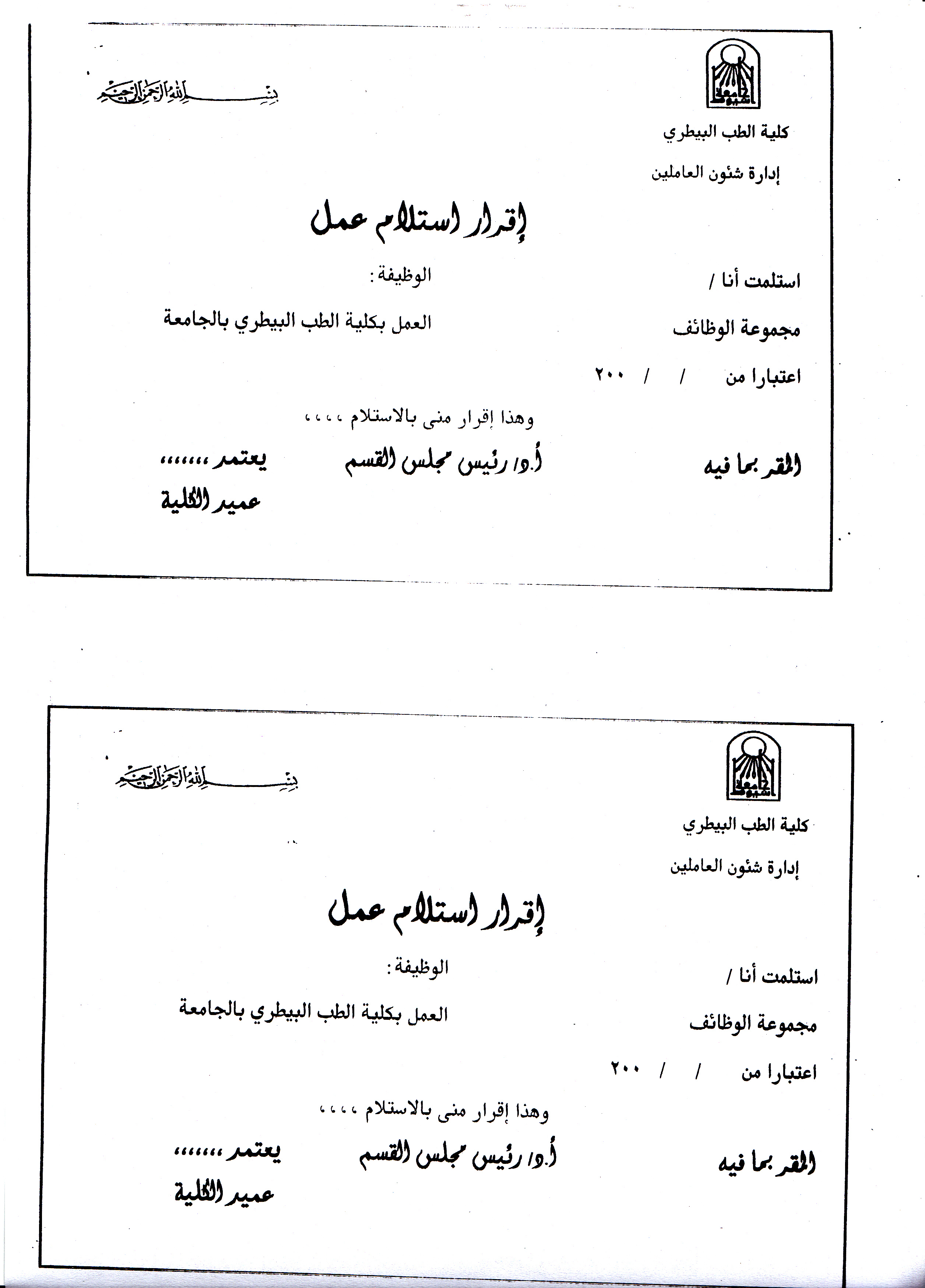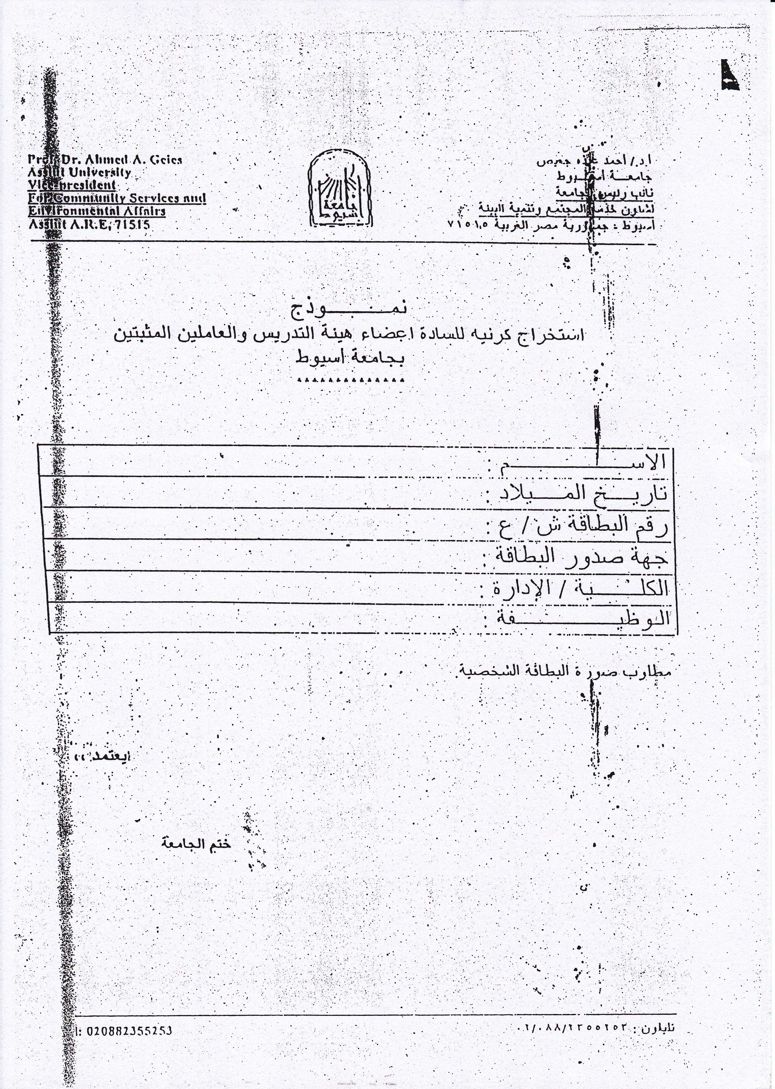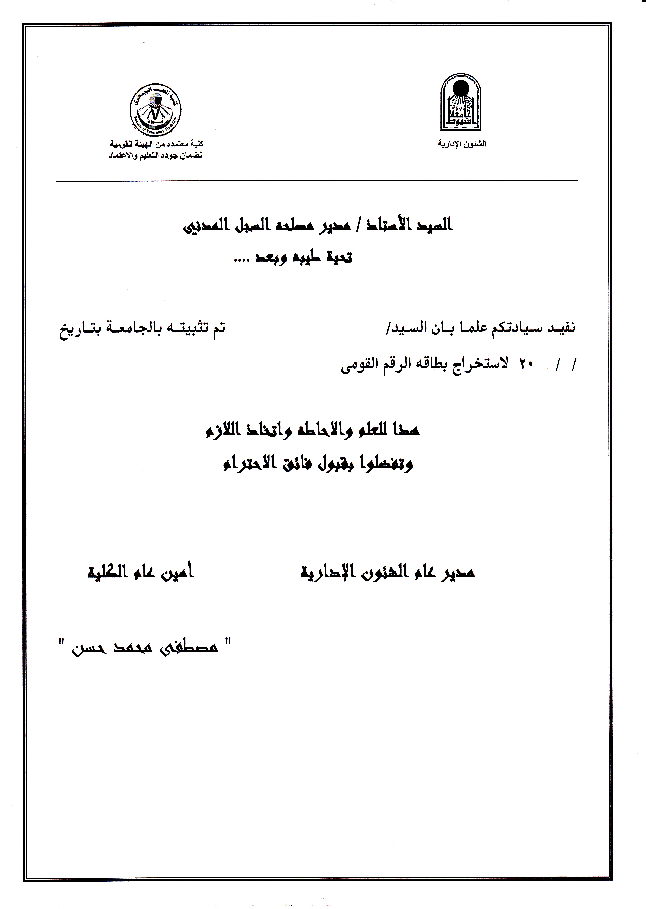 استخراج كارنيه للساده اعضاء هيئة التدريس والعاملين المثبتين