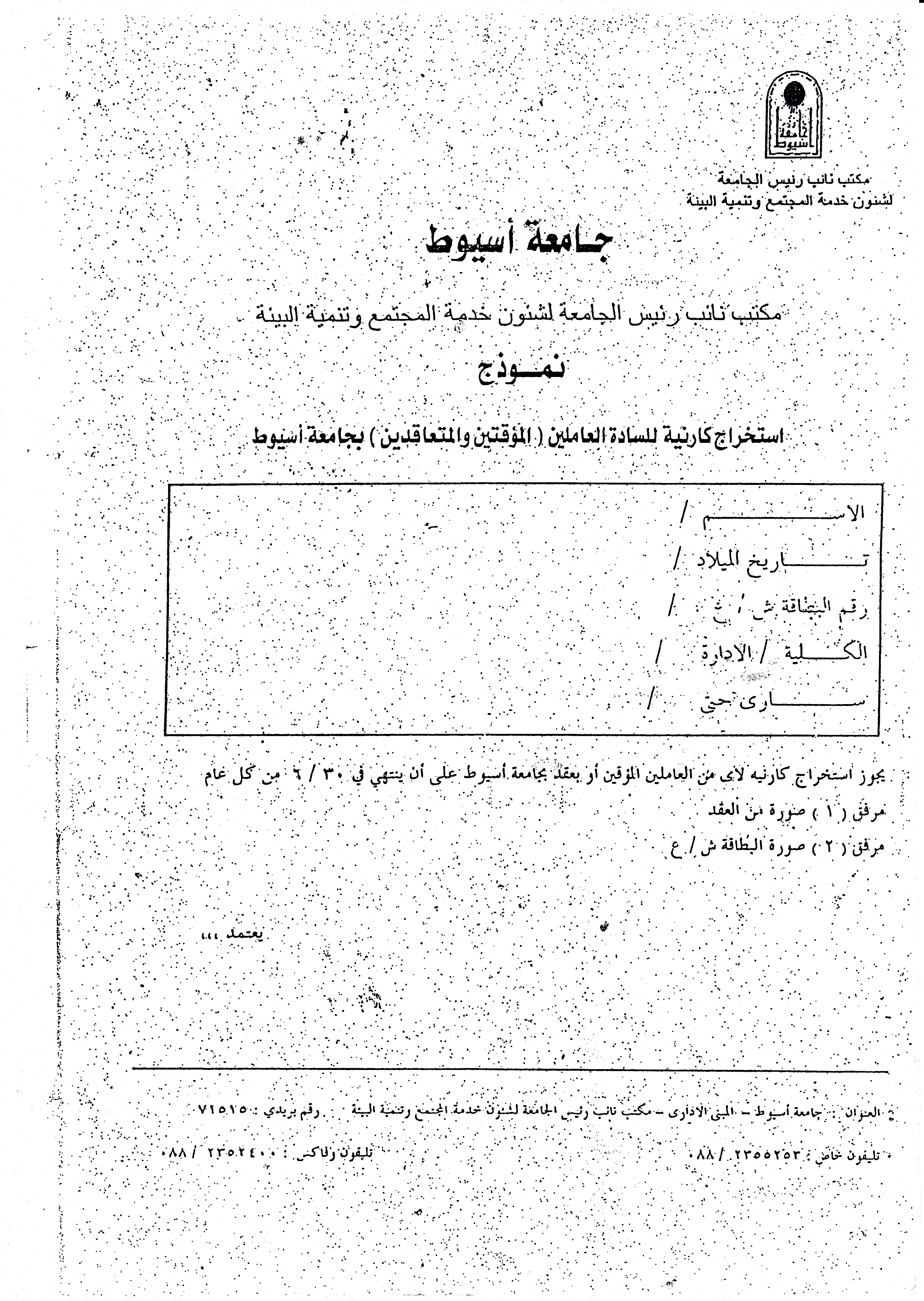 استخراج كارنيه للساده العاملين (مؤقتين ، متعاقدين )