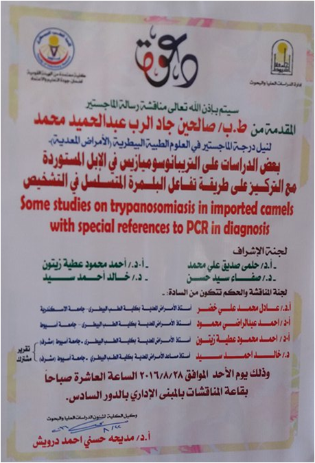 مناقشة رسالة الماجستير الخاصة بالطبيب بيطرى / صالحين جاد الرب عبدالحميد