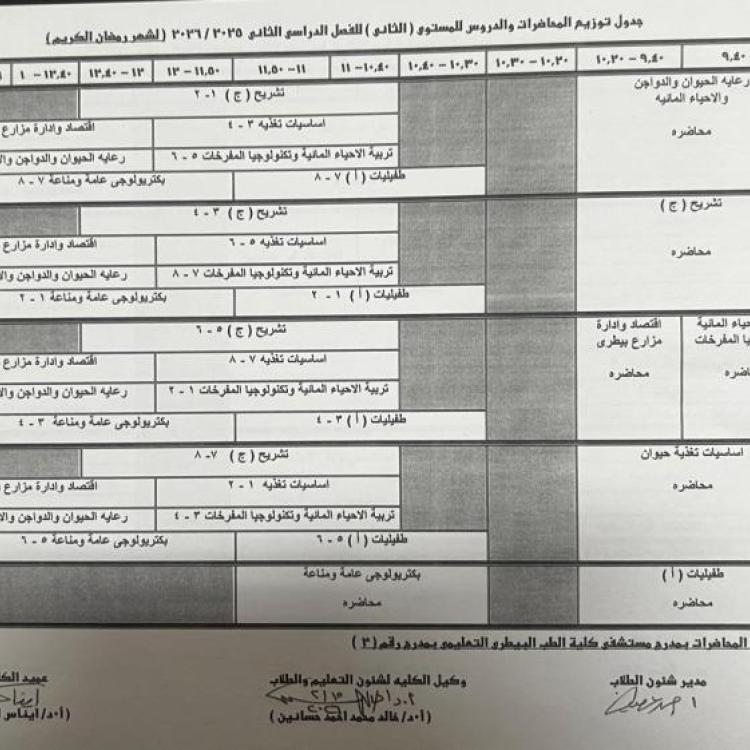 توزيع المحاضرات والدروس المستوى الثاني 2025-2026 (لشهر رمضان الكريم)