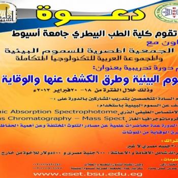 سوف تقوم كلية الطب البيطري جامعة أسيوط بالتعاون مع الجمعية المصرية للسموم البيئية والمجموعة العربية للتكنولوجيا المتكاملة بتنظيم دورة…